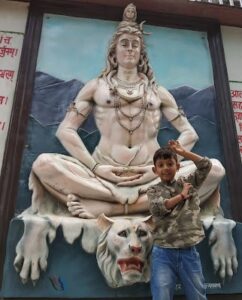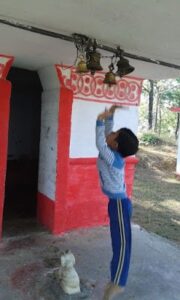 | गांव के शिवालय की घंटियां बजाने की कोशिश करता मेरा बेटा |